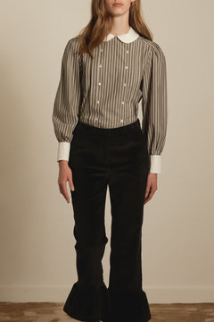 Playful and feminine pants with satined ruffled hems