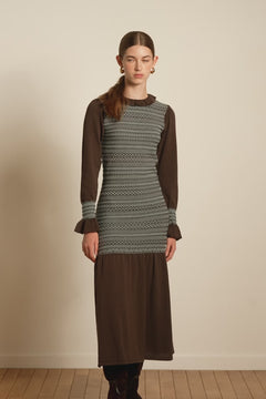 This season’s must-have: the Aleria Long Dress is now available in a knit version! Still as chic with its smocked details, ruffled neckline, and delicate brown touches, now softer and comfier than ever. Don’t miss out on this seasonal favorite