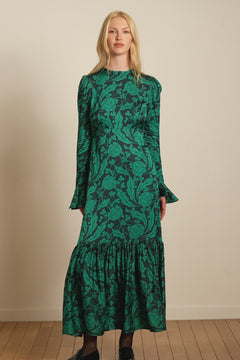 This elegant long dress blends romantic details with a timeless silhouette, crafted to bring a graceful touch to any wardrobe